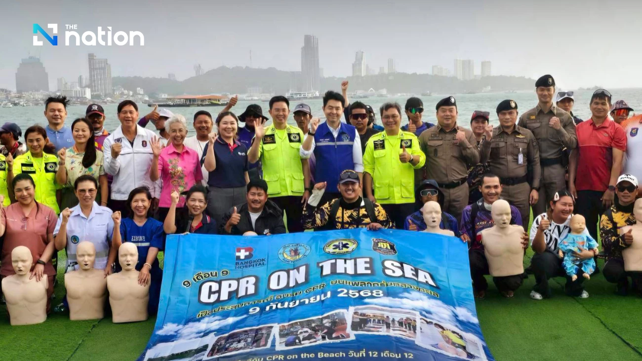 The day concluded with “CPR on the Sea”, a basic life support training for 100 participants—ranging from beach chair operators and massage practitioners to local fishermen—held in collaboration with Pattaya City, Bangkok Hospital Pattaya, and the Sawangboriboon Foundation at Bali Hai Pier.