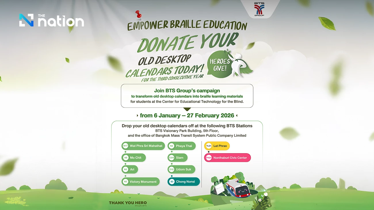 BANGKOK, 25 December 2025 – BTS Group Holdings PCL invites the public to donate their old desktop calendars as part of the third year of the ‘Heroes Give’ campaign to repurpose old desktop calendars into Braille learning materials for the Centre of Educational Technology for the Blind, part of the Foundation for the Blind under the Royal Patronage of H.M. the Queen.