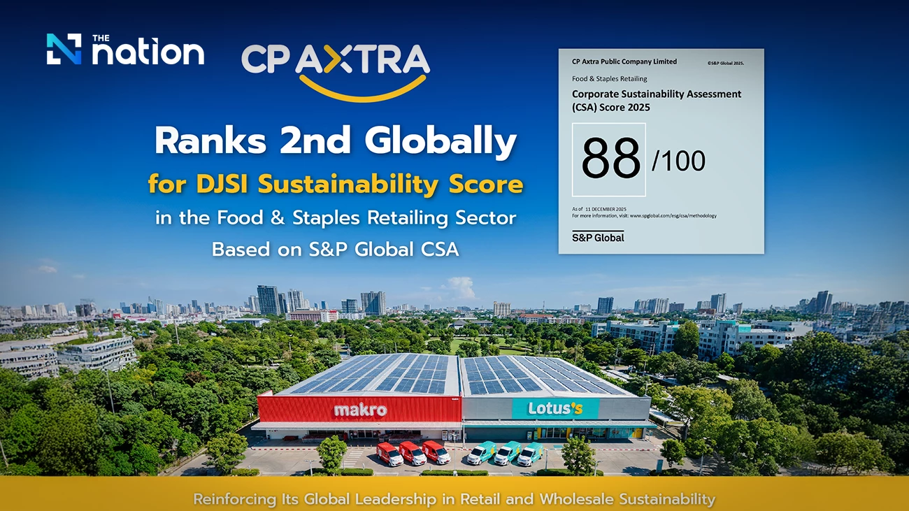 Bangkok: January 5, 2026 – CP AXTRA Public Company Limited (CP AXTRA), the operator of Asia’s leading wholesaler and retailer “Makro and Lotus’s,” has achieved outstanding global recognition for sustainability. The company received a score of 88 out of 100 in the 2025 Corporate Sustainability Assessment (CSA) by S&P Global, the organization responsible for compiling the Dow Jones Sustainability Indices (DJSI). This reflects continued significant improvement from 2023 to 2024, elevating CP AXTRA to 2nd place globally in the Food & Staples Retailing sector.