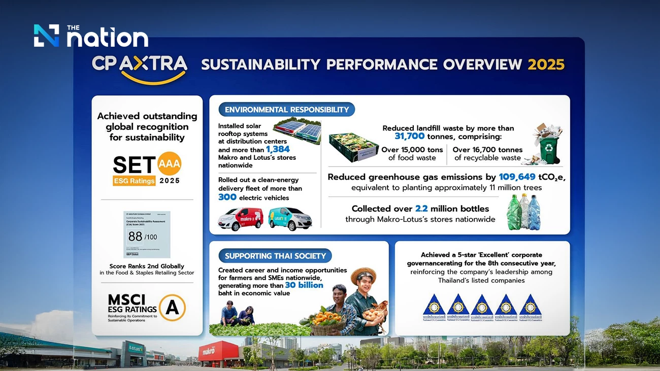 CP AXTRA also maintains the highest standards of corporate governance, earning a 5-star “Excellent” rating (the highest level) for the eighth consecutive year from the Thai Institute of Directors (IOD), with support from the Stock Exchange of Thailand (SET).