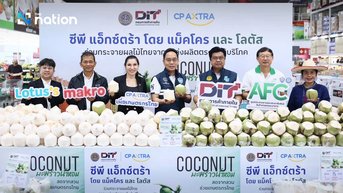 Makro and Lotus’s are providing selling space for farmers from 18–31 March 2026 across 10 branches, including Makro Ladprao, Srinakarin, Bangbon, Salaya, Nakorn In, and Lotus’s Sukhapiban 1, Bangna, Phatthanakan, Ramintra, and Bangkapi. The program aims to accelerate distribution to the market, with a target to purchase and distribute 3 million coconuts by April, and more than 6 million coconuts throughout 2026, helping stabilize prices and expand market opportunities for Thai farmers.