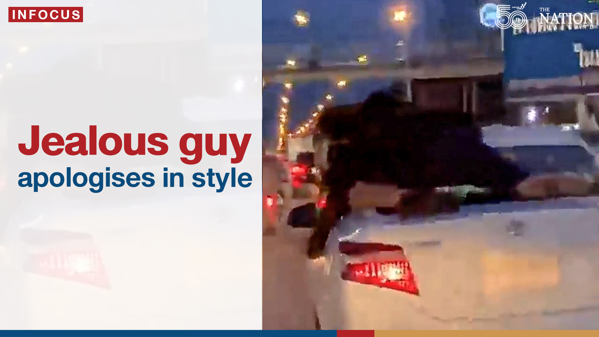 The clip of a man hanging onto the roof of his girlfriend’s car as she drove off went viral on Wednesday. The couple had reportedly got into an argument at a shopping mall in Bangkok and the woman chose to drive away.