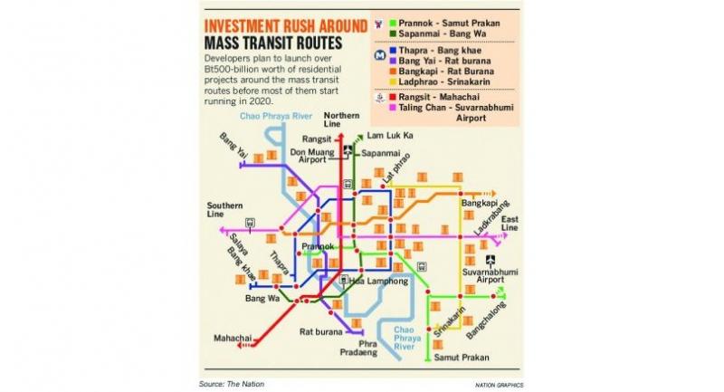According to a survey by LPN Development Plc this year is seeing a record-setting explosion of new condominium project launches along both current and upcoming transit routes worth Bt217.7 billion.