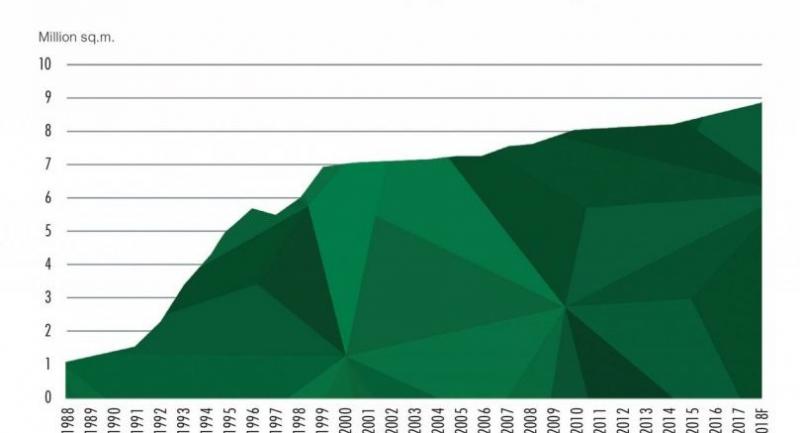 30 years on, the total office stock is now almost nine million square metres and average grade A central business district (CBD) rents are just under Bt1,000 per square metre.