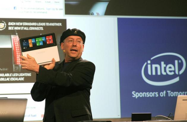 Jeff Clarke, vice chairman of Global Operations and End User Computing Solutions at Dell*, joined Otellini onstage to announce the company’s first Ultrabook, the new XPS 13* powered by the Intel® Core™ i7 processor. Scheduled for February availability, the sleek and stylish design weighs only 2.99 lbs and provides up to 8 hours of battery life.