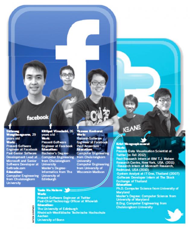 As of now, there are three Thai software engineers working for Facebook. Two Thai software engineers and a software scientist will start working at Twitter in October this year. Though their career paths might be different they have one thing in common – all five are graduates from the Faculty of Computer Engineering, Chulalongkorn University.
