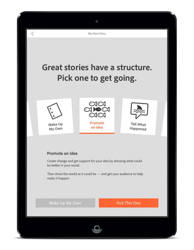 Adobe Voice empowers iPad users to inform, persuade or inspire others to action by using a combination of their own recorded voice, imagery, music and cinema-quality motion graphics and effects.