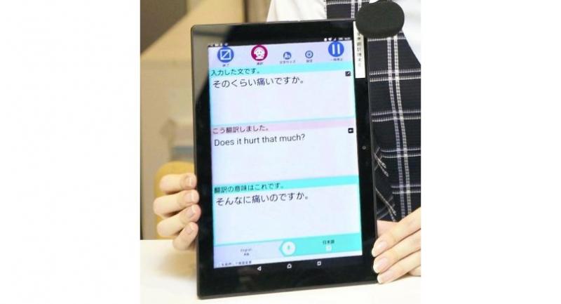 The University of Tokyo Hospital, the National Institute of Information and Communications Technology and Fujitsu Ltd. jointly developed a tablet device that translates spoken communication between patients and doctors from Japanese into English or Chinese, or vice versa. The output may be in either written or voice form.