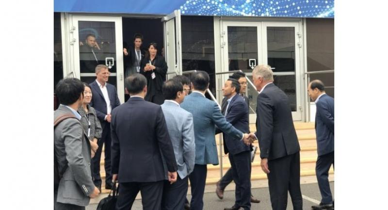 Yoon and Paliwal looked around Harman’s exhibition and moved to an observatory at the Funkturm Berlin Radio Tower located next to the Harman venue for private business talks.