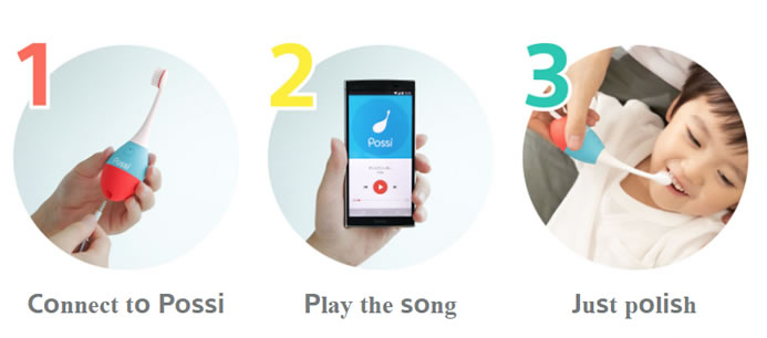 Possi is a toothbrush for the parent’s final brushing after a child brushes on their own. The round shape and candy-colored design appeal to children. Kyocera’s small ceramic piezoelectric element and digital-driven amplifier mounted on the body cause the toothbrush head to vibrate, allowing the child to hear and enjoy music only when the brush head is in contact with the child’s teeth or the inside of the mouth.