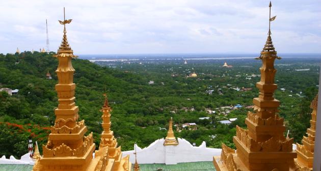 Ayutthaya didn’t have scenic hills either. Across the river is Sagaing, which served as the capital of Myanmar from 1760–1765. The Sagaing Hill is pock-marked with pagodas and monasteries.