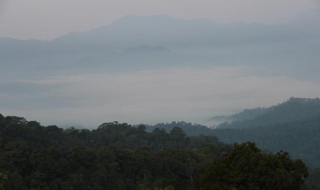 We’re not the first to arrive. A group of young travellers are already standing on the escarpment, their faces intent as they stare out at breath-taking panoramic view. Soon enough, as the first rays of the sun bring light to the horizon, the fog slowly fills the valley. In the middle ground, we can see the green canopy of the rainforest through the wreaths of white fog while, in the far distance, our eyes can just about make out the mountains rising to the left and right. It’s awesome and I find myself straining to pick out the Tenasserim range that separates Myanmar and Thailand.