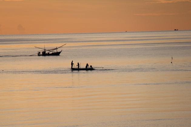A small concrete path takes us through a coconut plantation and ends at the lonely beach. Parked at what feels like the end of the earth, we are somewhat surprised that the resort we’re looking for is nowhere in sight. In the distance we spot someone walking slowly in the sand and make our way over to him in the hope he can set us on the right path.