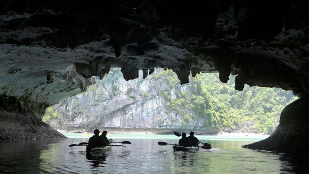 Earlier today our 15-cabin cruise ship, the “Treasure Junk” cruised through Halong Bay to the untouched Bai Tu Long Bay, where we will enjoy two days of leisurely kayaking.