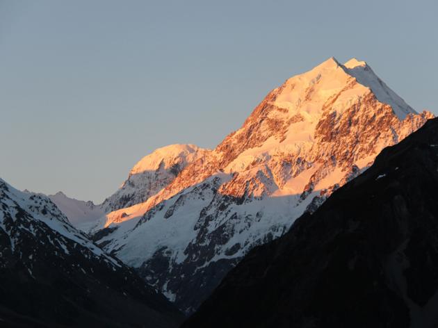“In the evening, as the sun starts to set and catches the right angle to Mount Cook, you will see the summit turn pink,” she tells us.