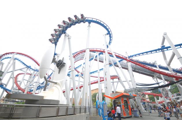 The ride begins and in no time we’re hurtling along at immense speed, spiralling, turning and twisting. There are moments I can’t be sure whether I’m upside down or right side up. All I know is that this is as close to perfection as fun can get. Maybe the adrenaline has something to do with it, but my heart is fairly bursting with joy. If I was smiling on the Human, I simply can’t stop grinning when I climb out of the Cylon train. Had I known the blue-track ride was this amazing, I would have jumped on a long time ago.