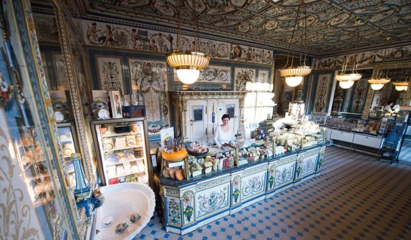 Busloads of tourists keep arriving at the milk-and-cheese shop, which dates back to 1891 and is covered inside from floor to ceiling in hand-painted glazed tiles.