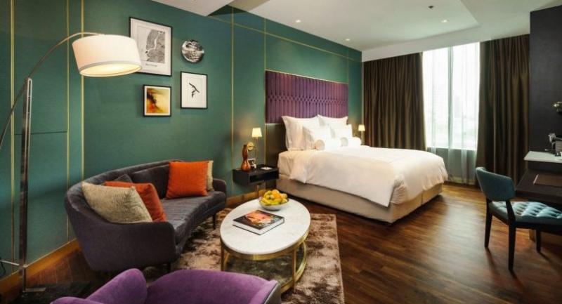 The hotel offers 148 smart studios and one-to three-bedroom suites ranging from 37 to 154 square metres. Each room has a generous bed, en-suite bathtub and floor-to-ceiling window overlooking city life. Wooden floors add a warm feeling, while the studio room has sofa seating and a kitchenette and the suites boast balconies, full kitchens, living and dining area.