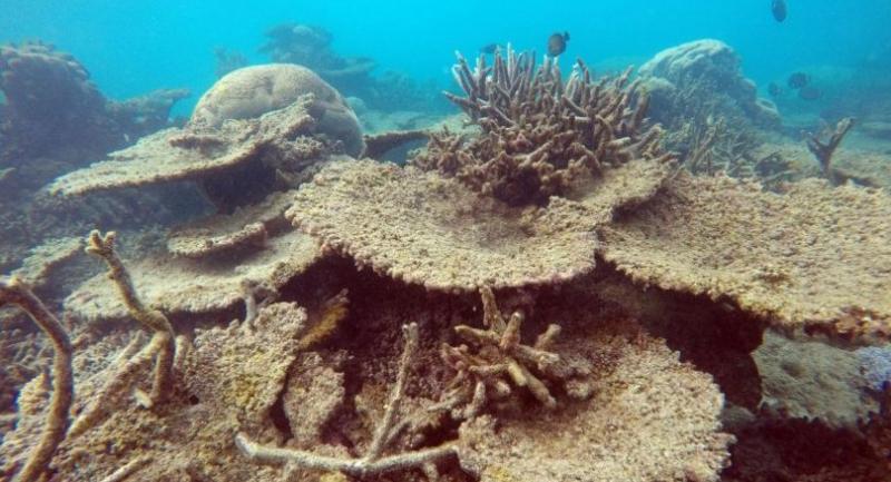 Swathes of coral died or were damaged in the unprecedented successive events, particularly the more heat-susceptible branching corals that are shaped like tables.