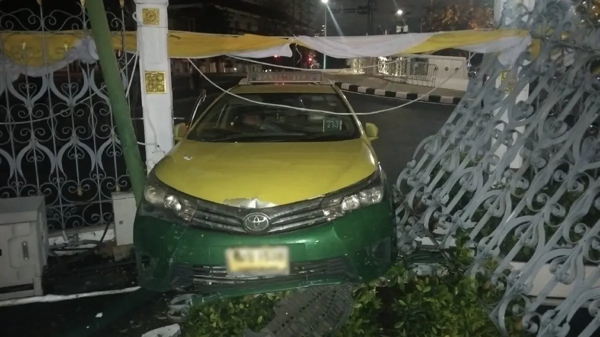 At 3:30 a.m. on Tuesday (May 27), police officers from Dusit Police Station received a report that a taxi had crashed into the fence of the Government House on Phitsanulok Road, Dusit District, Bangkok.