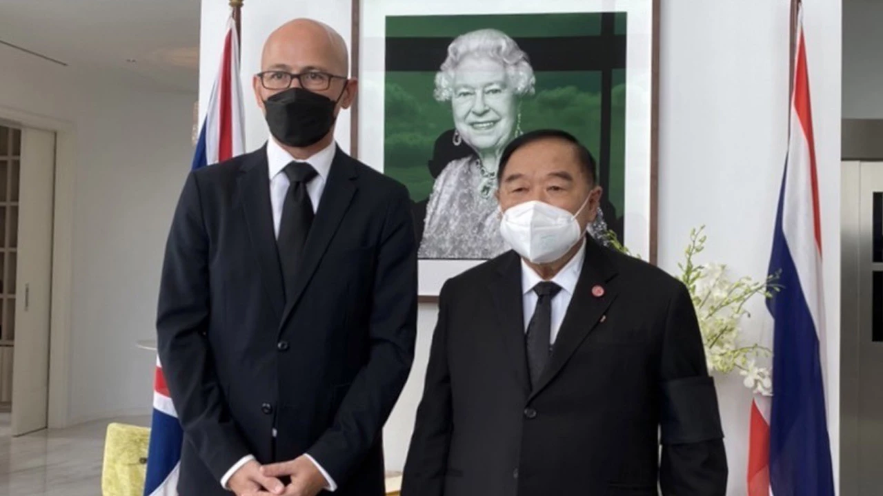 On Friday (September 9), General Prawit Wongsuwon, Deputy Prime Minister and Acting Prime Minister; Chuan Leekpai, President of the National Assembly and Speaker of the House of Representatives; Don Pramudwinai, Deputy Prime Minister and Minister of Foreign Affairs; General Prayut Chan-o-cha, Minister of Defence; and Abhisit Vejjajiva, former Prime Minister of Thailand, signed a book of condolence at the Residence of the Ambassador of the United Kingdom to Thailand (Mark Gooding) on the occasion of the passing of the late Queen Elizabeth II at the age of 96 in the afternoon of September 8, 2022 (local time in the UK).