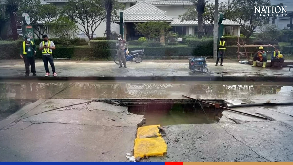 Motorists are being advised to avoid a section of Chaeng Wattana Road because heavy flooding has created a large hole there.