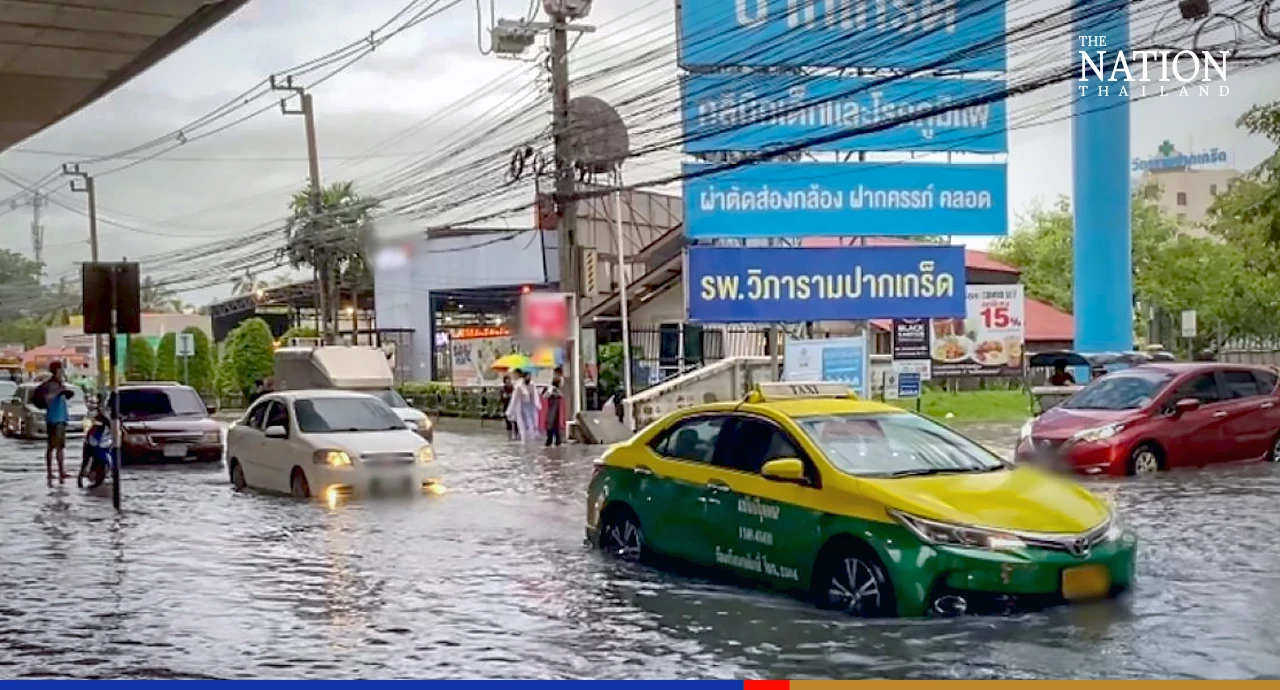 Chaeng Wattana Road leading to Vibharam Pak Kret Hospital in Nonthaburi was under 30 centimetres of floodwater, disrupting traffic. Over a dozen motorcycles were stranded on the roadside as water clogged their engines. Meanwhile, vendors in Pak Kret Municipal Market closed their shops early and move merchandise to higher ground after being inundated by water up to 40cm deep.