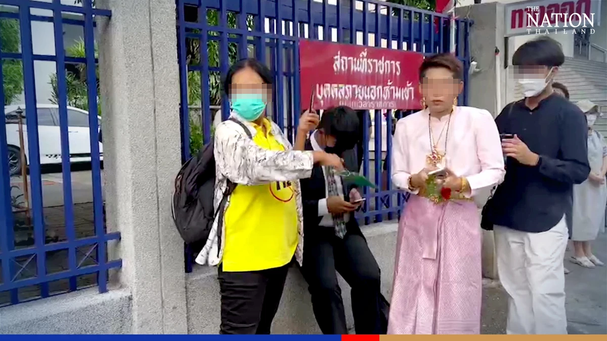 She was one of two protesters arrested for allegedly poking fun at a royal during a rally held by the Rassadorn Group in Silom on October 29, 2020.