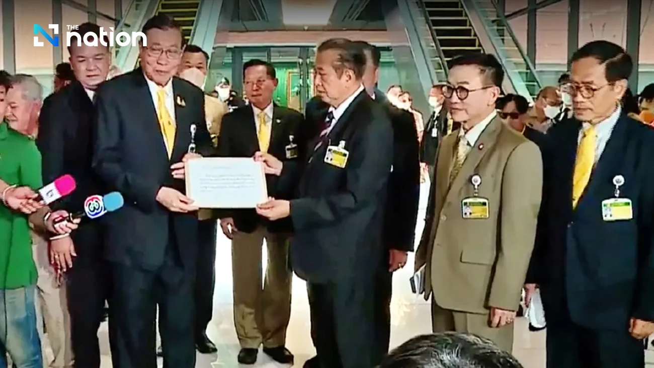 Led by Seree Suwanpanont, the group submitted the motion on Monday to Senate Speaker Pornpetch Wichitcholchai. Several notable senators accompanied Seree, including Jetn Sirathranont, Somchai Swangkarn, Chalao Puangmalai and Thawil Pliensri.