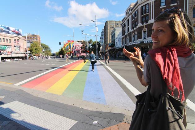 Sydney tourism officials, on websites encouraging foreign visitors to come for the month-long Mardi Gras festival in March, featured images of the rainbow crossing in their brochures.