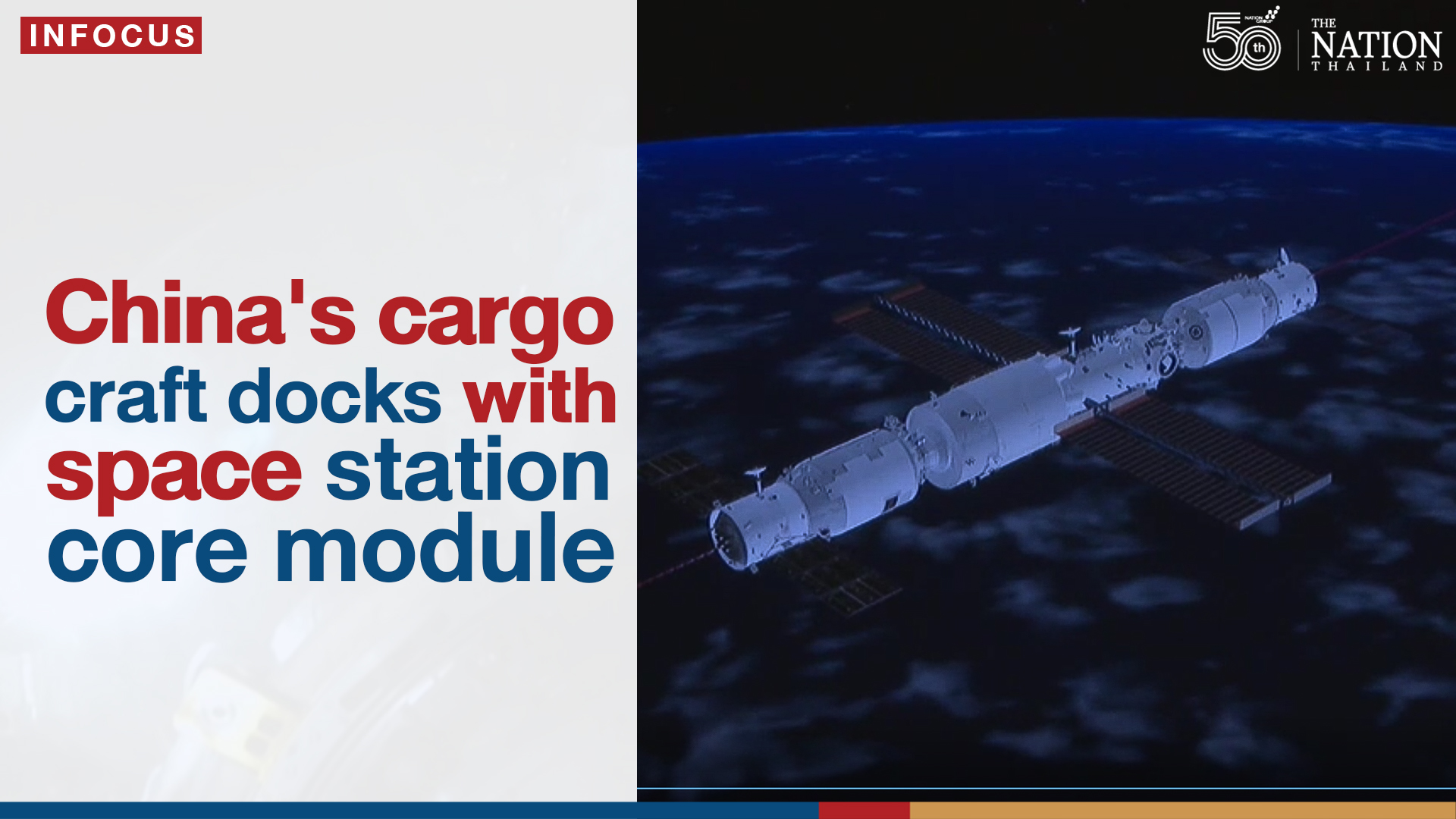 China's cargo spacecraft Tianzhou-3, carrying supplies for the upcoming Shenzhou-13 crewed mission, successfully docked with the space station core module Tianhe on Monday.