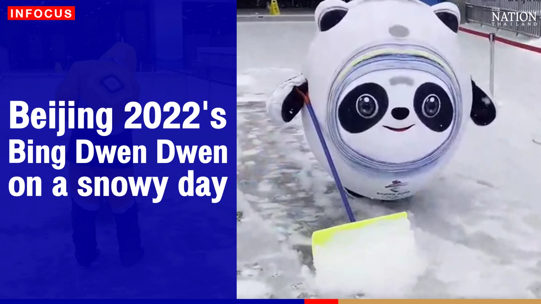 Beijing 2022's Bing Dwen Dwen on a snowy day