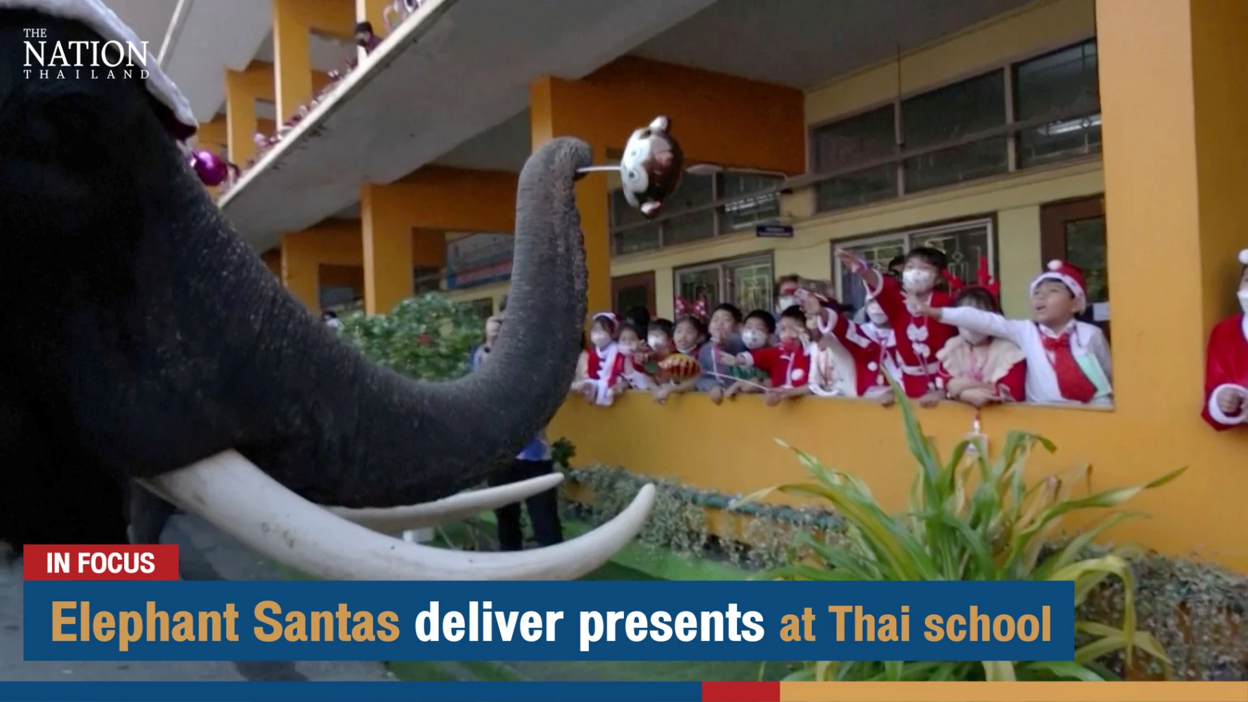 A group of mahouts, each dressed as Santa Claus, led a herd of elephants into a school in central Thailand on Friday (December 23) to distribute Christmas gifts to students.