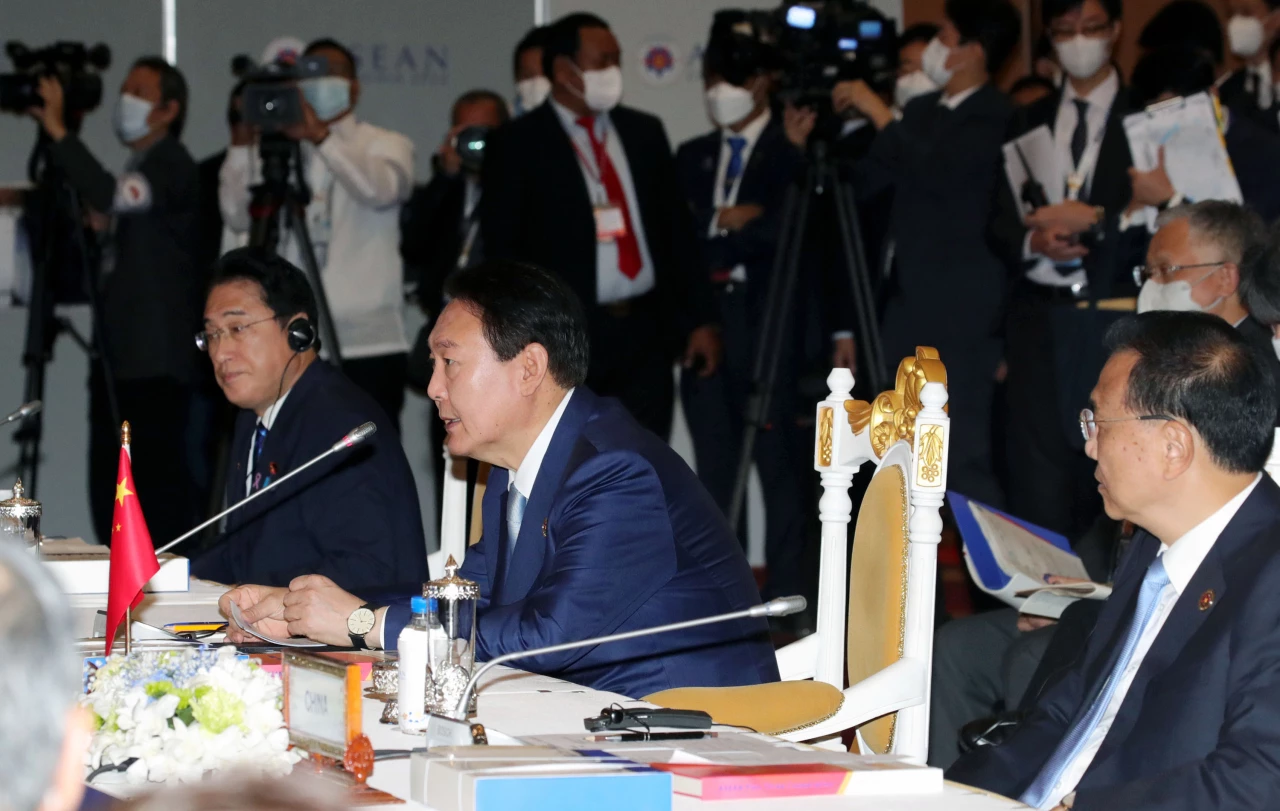 Yoon made the remark during a summit involving the Association of Southeast Asian Nations (Asean) and South Korea, China and Japan, known as the Asean Plus Three, which brought together the leaders of nine Asean countries, Chinese Premier Li Keqiang and Japanese Prime Minister Fumio Kishida. "South Korea will play an active role as this year's chair of the South Korea-China-Japan summit and coordinator representing South Korea, China and Japan for the Asean Plus Three," Yoon said.