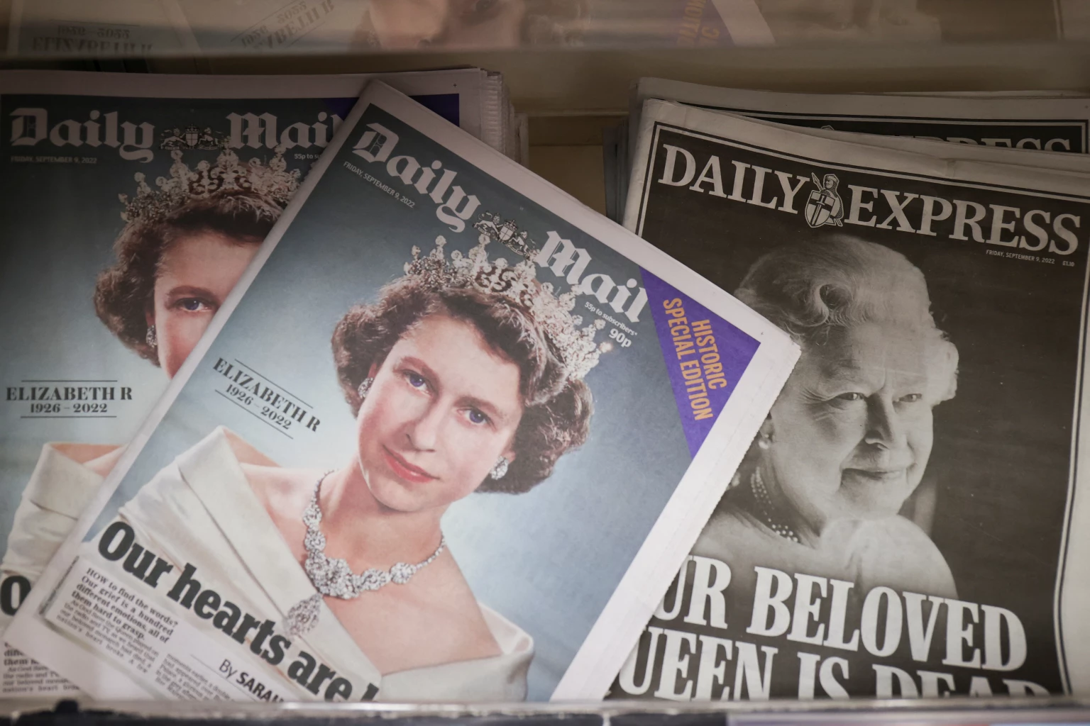 "God Bless" read the headline in the Sun newspaper and "Final Farewell" read the headline in The Times, both showing a previously unseen portrait of the Queen released by Buckingham Palace on the eve of her funeral.